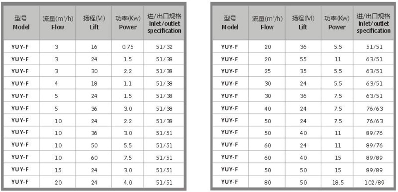 性能選型表: